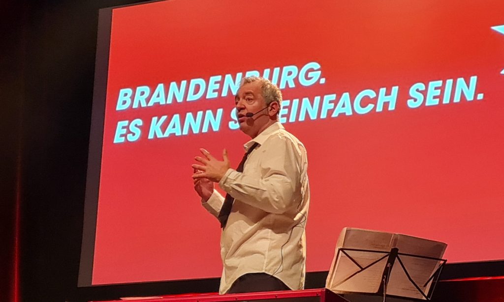 Der Applaus ging weiter und schon nach kurzer Zeit kam Rainald alleine zurück und setzte sich hinter das Keyboard. „Und jetzt?“, fragte er freundlich. Sofort erschallten Rufe aus dem Publikum: „Brandenburg!“ „Ich bin der Präsident!“ Marcus kam mit einer Flasche Rosé und einem Glas auf die Bühne, setzte sich auf seinen Stuhl und stellte Flasche und Glas sorgfältig in Griffnähe ab. Rainald beobachtete ihn und grinste: „Ach, grüner Tee, ach ja.“