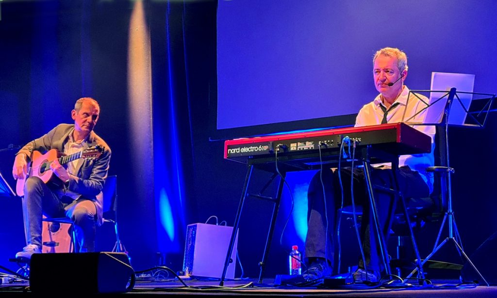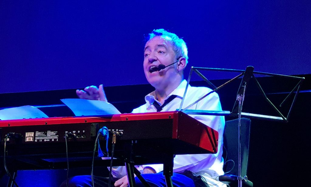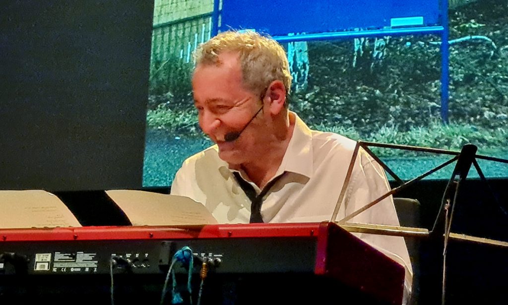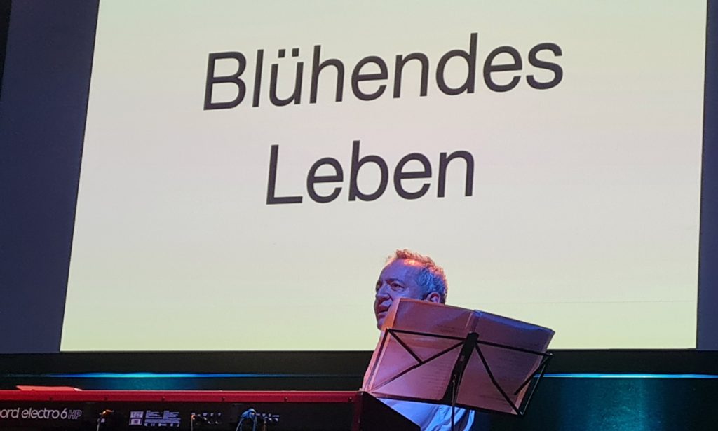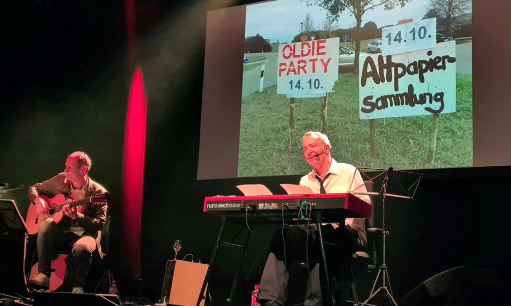 Rainald setzte sich ans Keyboard, spielte die ersten Akkorde und begann zu singen: „Es gibt Länder …“ Jubel brach aus und er musste kurz abwarten, bis das begeisterte Publikum leiser wurde und er weitermachen konnte mit: “ … wo was los ist.“ Schon wieder Jubel.