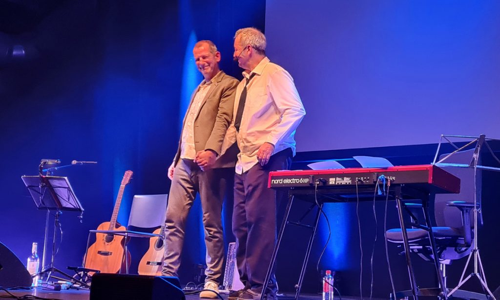 Es wurde heftig geklatscht und sie kamen zurück. „Der Zugabenteil ist am längsten“, grinste Rainald und das Publikum jubelte schon wieder hocherfreut. Was für ein Abend! Rainald setzte sich ans Keyboard und fragte in Richtung Mischpult: „Franz, bist zu bereit für das nächste Lied?“ „Ja, wenn es das ist, was ich meine“, antwortete Franz.