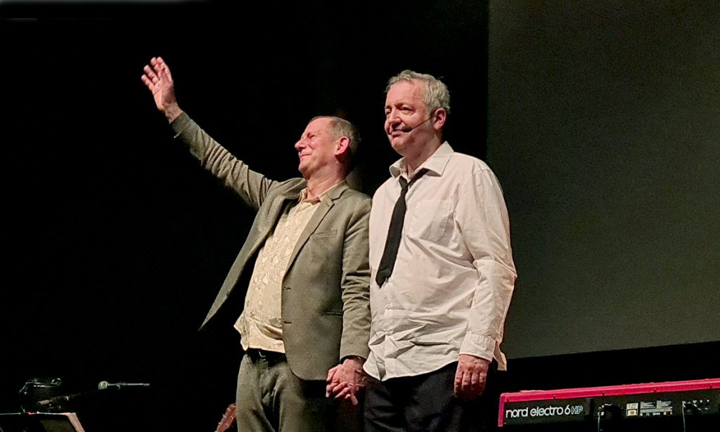 Rainald und Markus auf der Bühne hatten ihren Spaß, hörten zu und grinsten fröhlich. Franz am Kazoo hielt durch und sirrte immer weiter.