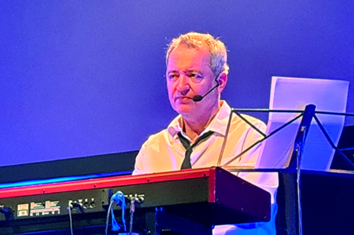 Für das nächste Lied stand Rainald auf und sagte dabei halblaut, wie zu sich selbst: „Stehend, die Logopädin hat das gesagt.“ Also stand er neben dem Keyboard, die Hände in den Hosentaschen, und sang Simplify your life.